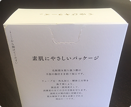 化粧箱の抜き刃をマイクロウェーブ状にすることにより、手を切りにくくしています。工場での充填作業時に手が切れにくくなり、効率が上がります。